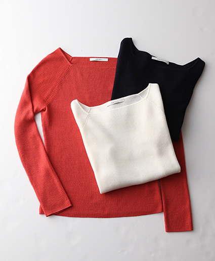 人気のファインウールシリーズも、やっぱり白が欲しい。タートルの立ち上がりと、程よくゆったりとしたサイズ感が気分です。(ana)