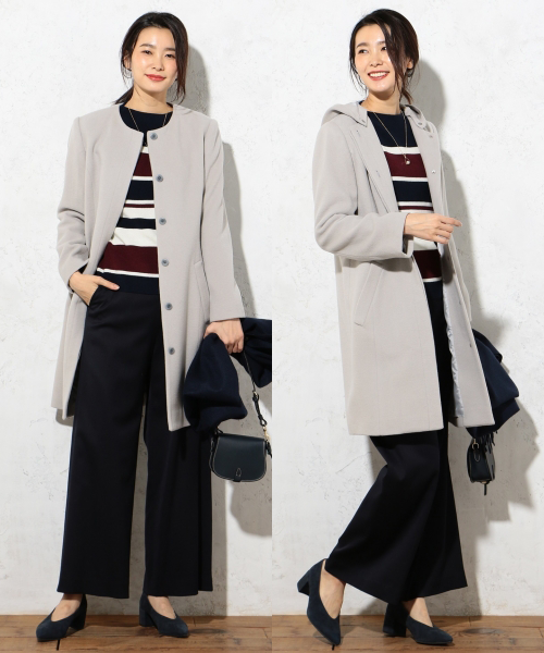 • 取外しできるフードがついた、2WAYコート。フードを取り外してスッキリしたノーカラーコートは、上品なお出かけ着に。顔周りを柔らかな印象にしてくれるフーデッドコートは、カジュアルな普段使いに。パーティシーンにもおすすめです。ROPE'フード付き2WAYメルトンコート取外しできるフードがついた、2WAYコート。フードを取り外してスッキリしたノーカラーコートは、上品なお出かけ着に。顔周りを柔らかな印象にしてくれるフーデッドコートは、カジュアルな普段使いに。パーティシーンにもおすすめです。ROPE'フード付き2WAYメルトンコート