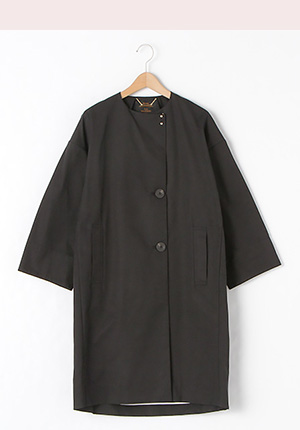 人気の理由ハリのある素材のノーカラーコート。クラシカルな雰囲気を持ちつつ、コーディネートしやすいコクーン型が、ニームらしいアイテムです。