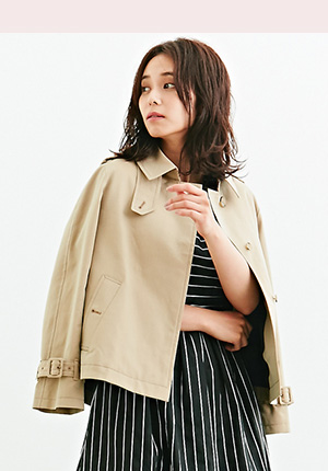 人気の理由さりげないAラインがマニッシュ過ぎない、ショート丈のトレンチコート。ミモレ丈のスカートやワイドパンツなどにも合わせやすい。