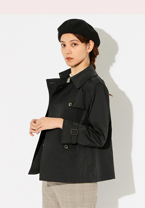 人気の理由ショート丈が軽さのある、クラシックなトレンチ。花粉防止効果も嬉しい。
