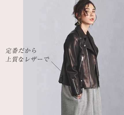 人気の理由クラシックなライダースジャケットは、長く使える上質なものを選びたい。表情のある上質レザーならではの、ワンランク上の着こなしを楽しめます。