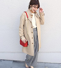 人気の理由デイリーに活躍すること間違いなしのステンカラーコート。普段はおちついた色が多い人も、ぜひキレイ色を選んでほしい。春らしい、大人のカジュアルスタイルに。