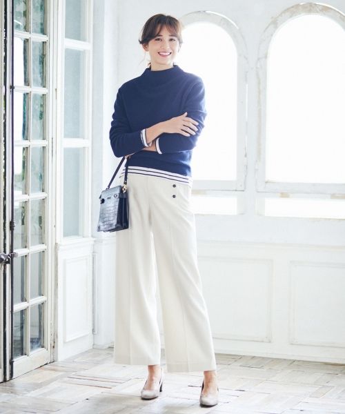袖からボーダーをのぞかせれば、大人カジュアルなマリンスタイルの完成。