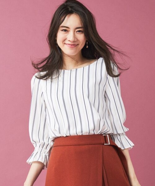 【洗える】マルチストライププリントキャンディスリーブ ブラウス
