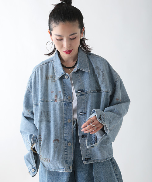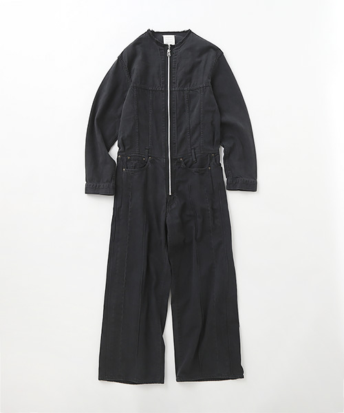 KUROのアーカイブのデニムジャケットとパンツを一度解体してパッチワークで再構築したもの。 ビックサイズなシルエットをバックスタイルでKUROのアイコニックな折りたたむような 縫製を施し、印象的なシルエットになる様に仕上げてもらいました。インナーにフェミニンな ブラウスをプラスするレイアードスタイルもオススメです