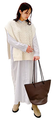 カットソーやシャツ、ニットなどレイヤードを楽しんで。