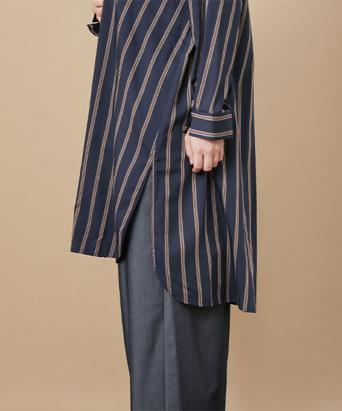 身頃の切り替え線とポケットを同化させたデザインが、新鮮なフレアシルエットを生み出します。ミニマルなデザインながらシルエットの美しさで、一枚でさらっと着るだけで洗練された装いに。