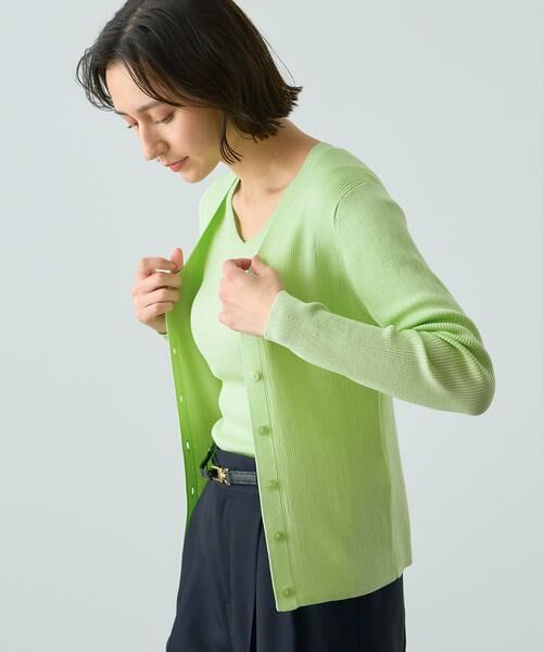 ANAYIの定番素材を使った、きれいめ派のマストハブカーディガン。さらりとした肌触りは通年使えます。毎年、新色が追加される大人気シリーズ。同素材のプルオーバーとセットとしてもお使いいただけます。