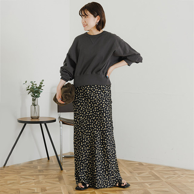 夏服に合わせるだけで気分が変わる、秋の始めにぴったりなスカート。遠目にも映えるドラマチックなアイテムを、秋はシックに引き締めて大人の着こなしを楽しんで。