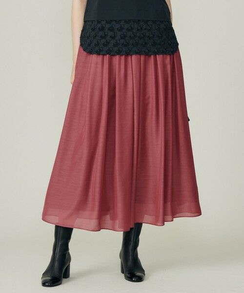 ふんわりとしたやわらかい素材のスカートがおすすめ。トップスをウエストINにしたり、ショート丈のトップスと合わせて全体的にXのラインになるように意識しましょう。