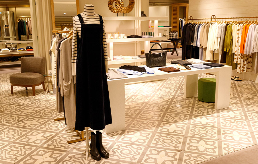 東京都中央区日本橋2-5-1 日本橋高島屋S.C.新館 2F 広々とした200坪強の店内は、まるでラグジュアリー なリゾートホテルのよう。国内外の旬のウエア、 小物、時計やジュエリーが一堂に会し、気分が 上がるラインナップに。
