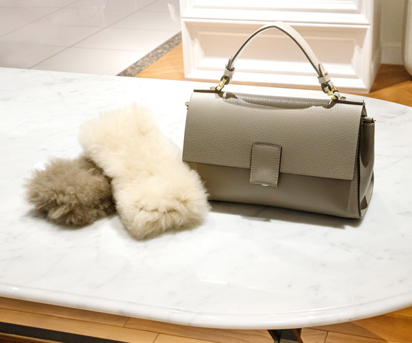 柔らかいカシミヤファーを使用した2WAYミニマフラーとイタリアインポートの上質レザーを使用したバッグが入荷いたしました。
