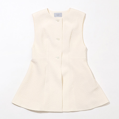 表情のあるジャカード素材にペプラムデザインが魅力。メリハリがついてさりげなくスタイルアップできるのも嬉しいポイント。