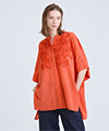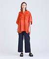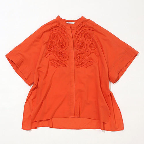 胸元にあしらった刺繍が華やかなシャツは、軽やかでリラクシーなシルエットが汗ばむ季節も快適に。大胆なオレンジが初夏の陽気にぴったり。