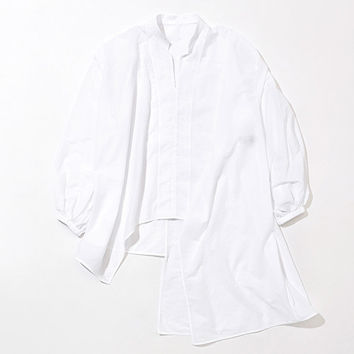 ライトで程よいシアー感のアシンメトリートップス。一枚で主役にも、レイヤードスタイルも楽しめる万能アイテム。