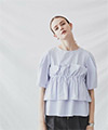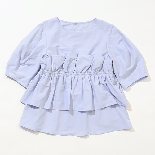 ウエストにフリルをあしらった、即着映えする甘口ブラウス。シャツ地素材が可愛げと同時にモダンな印象叶える一枚。