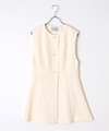 クリアな透明感とふんわりとエアリーな風合いがきわだつ、白のセットアップ。攻めたデザインにも上品な女性らしさが漂うのはリッチな白だからこそ。