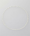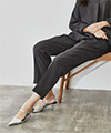 知的で品のよさも醸し出すグレーパンツがフェミニンなブラウスをクリーンに仕上げてくれる。シルバーのネックレスで涼しげにまとめて。
