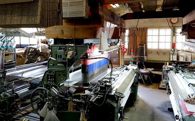 織物の町として栄え、「西の西陣、東の桐生」と称される群馬県桐生市。創業100年を超える老舗機屋「須裁」は古くはシルクを使った和装生地から輸出用のドレス生地を、近年は国内向けの婦人用ジャカード生地の生産をしています。 現在主流の高速織機と旧式のレピア織機の両方を所有し、お客様のニーズにきめ細かく対応しています。 経(たて)緯(よこ)の密度が高く、様々な性質の異なる糸を組み合わせて表現する 繊細な織物開発にチャレンジするのを可能にしています。織機と言ってもそれを扱う職人の存在なくしては生まれません。