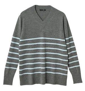 Vネックタイプのセーターはリラックス感がありつつも、程よい開きのVネックラインですっきりとした印象に。ヒップが隠れる着丈なので安心感も。