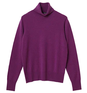 カシミヤ梳毛ならではのやわらかな肌触りが特徴のハイネックセーター。