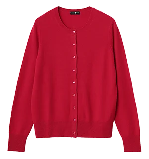さらっと羽織れる万能カーディガン。ボタンを留めてプルオーバーのように着用したり、クルーネックセーターとのアンサンブルもおすすめ。