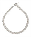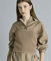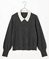 襟の端にパール調のビーズをあしらった襟付セーター。パール調のビーズが首元で華やかに輝き、顔映りを明るくしてくれます。