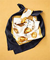 ダークブラウンのタイトスカートにはゴールドのアクセやストールを合わせて、華やかさをプラス。