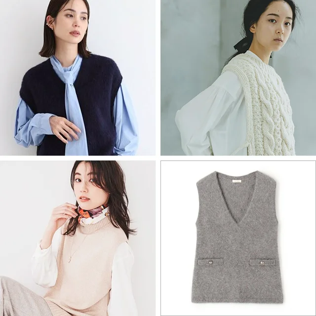 合わせるだけでサマになるベスト。ゆったりサイズは体型カバーも叶います◎袖部分が無いので、アウターの下でもごわつかず、温かい室内でも快適♪