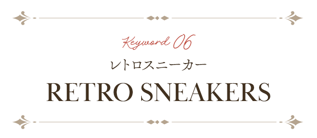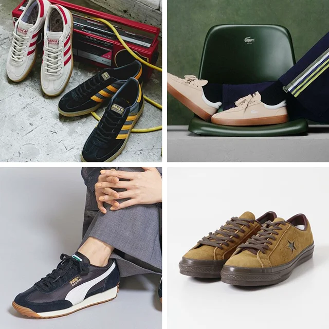 スエード等を使用したヴィンテージ感あるスニーカーは大人のきれいめスタイルにマッチ。