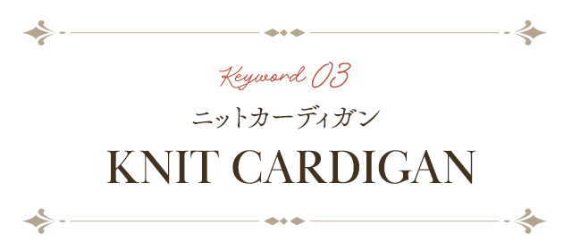 秋は羽織として、冬はインナーとして活躍が期待できる、ニットカーディガン。遊び心あるカラーに挑戦して、コーディネートのアクセントに。