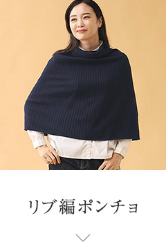 <日本屈指の紡績メーカーとタカシマヤが共同で企画したコレクション>伸縮性に優れ、ほどよく体に馴染むリブ編みポンチョ。どの向きでも着れる片側スリットのデザインと合わせやすいベーシックカラーで仕上げました。