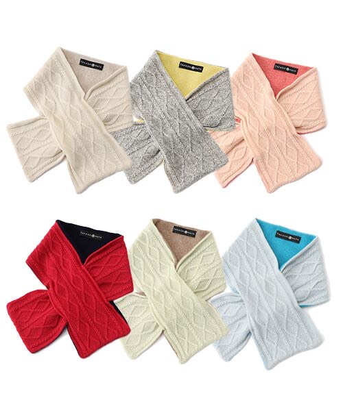 <上質なカシミヤ糸を使用した日本製のタカシマヤオリジナル商品>人気のプチマフラーシリーズから更にミニサイズが登場。優しい雰囲気のケーブル編みで、差込むだけで簡単にスタイリングが可能です。イエローベース・ブルーベースそれぞれのおすすめカラーでプレゼントにも最適です。