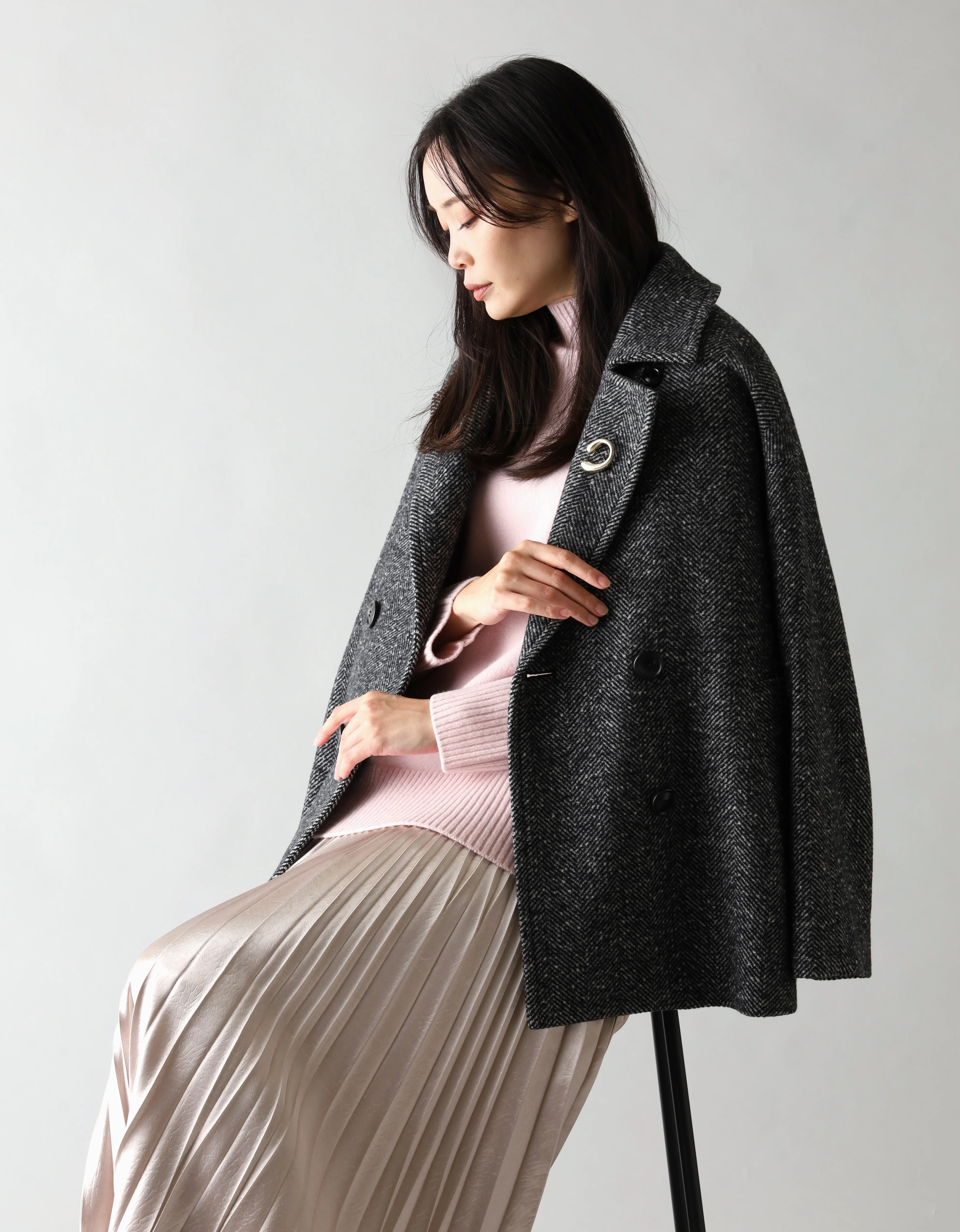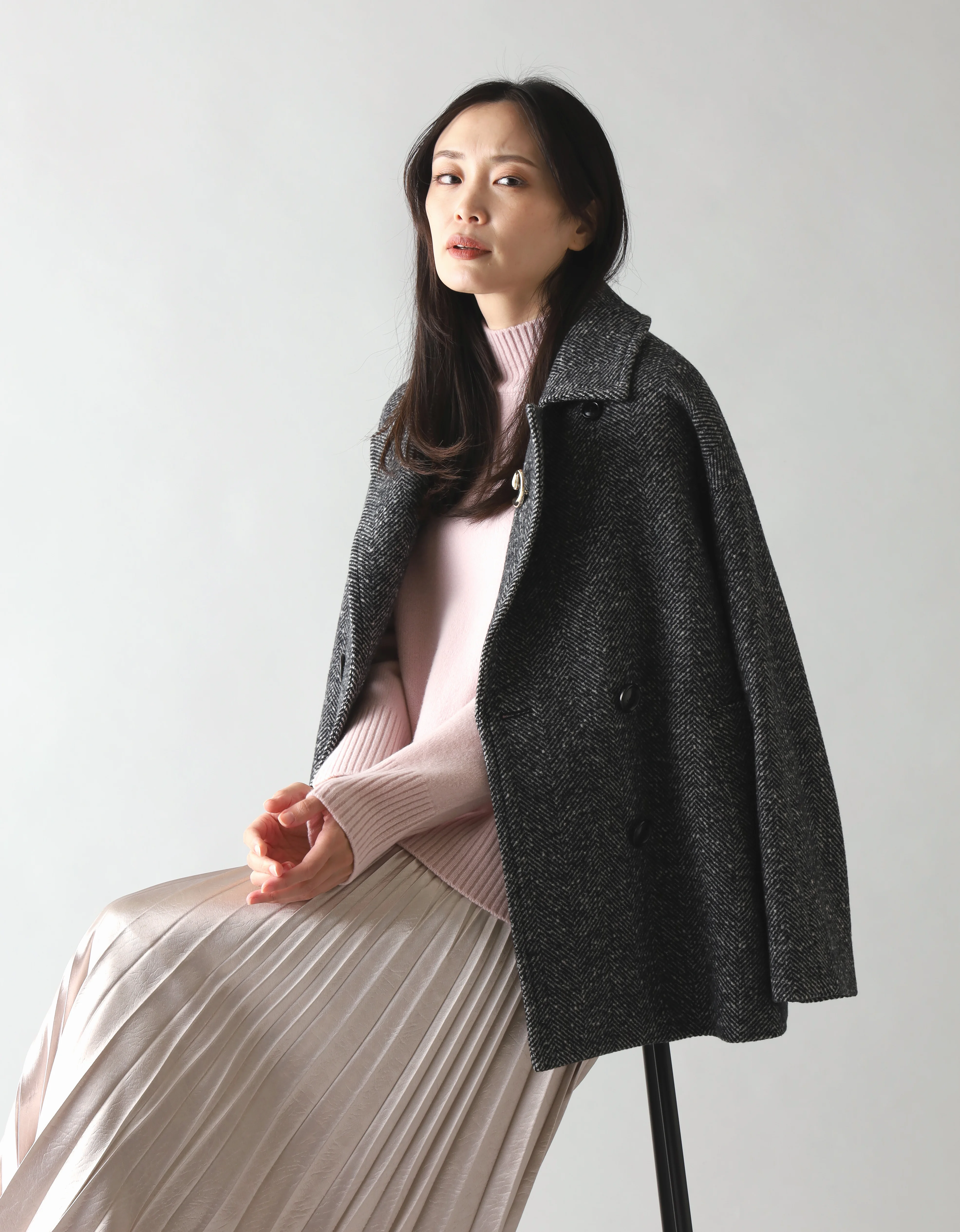 ジャケット感覚の軽さを備えつつ、オーバーサイズで重ね着もできるミドル丈のPコート。