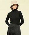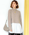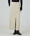 ボタンをすべて閉めてプルオーバーのようにコーディネート。光沢のあるスカートを合わせ、素材にメリハリをつければ、奥行きのあるワントーンコーデが完成。