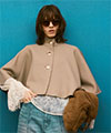女性らしさを引き立てる丸みを帯びたフォルムに、フロントの釦がリュクスなデザイン。短めの着丈はパンツにもスカートにもバランスよし。