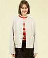 品よく映える旬アウター秋冬こそ着たい、ブークレ素材のノーカラージャケット。クリーンなオフホワイトとふっくらとした素材感が、なにげないパンツスタイルを一気にこなれた雰囲気に。