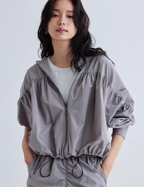 ブルゾンをはじめ、スポーティな要素をエレガントなムードで取り入れるスタイルに注目。