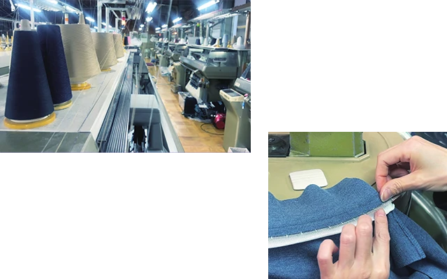 ニットの聖地、新潟県のなかでも婦人用ニットで国内トップクラスの生産量を誇る五泉市。優秀な工場が軒を連ねるなか、とりわけ編み地の「目面(めづら)」がきれいなニットを作る工場に今回の企画は依頼しました。和紙糸は少しテンションをかけるだけでも切れやすく、調整に大変な技術を要するため、少数精鋭のニッターが揃うこの工場でなくては為し得なかった商品です。上品な網上がりは、高い技術力の証でもあります。