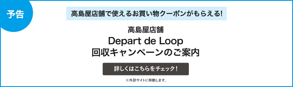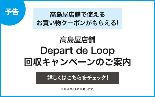 Depart de Loop(デパート デ ループ)は、高島屋グループが取り組む、循環型社会を目指した独自プロジェクト。名前には“新しい生活サイクルへの出発”という意味を込めて、2020年にスタートしました。 百貨店の主要な取り扱い商品である「衣料品」が、環境負荷の高い産業であることに向き合い、リサイクルパートナーと協力。販売・回収・再生のスキームで従来の「売りっぱなし」ではなく、新たな地下資源を使用することもない、サステナブルなビジネスモデルを構築・推進しています。