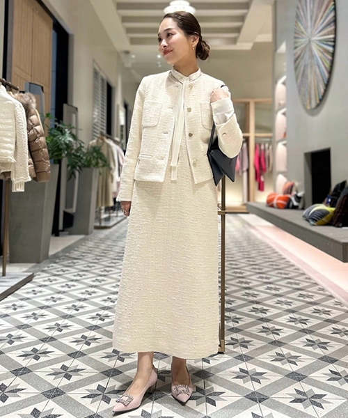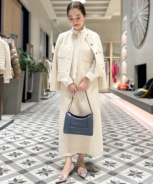 ハレの日にぴったりな〈Ballsey〉のジャケットとジャンパースカートの新しさのあるセットアップ。スラブコットンツイード素材を使用、ナチュラルな表情感が柔らかく見え、女性らしさを引き立たせてくれる人気のシリーズです。小物は違うカラーを同一トーンで取り入れてほんの少しアクセントを。
