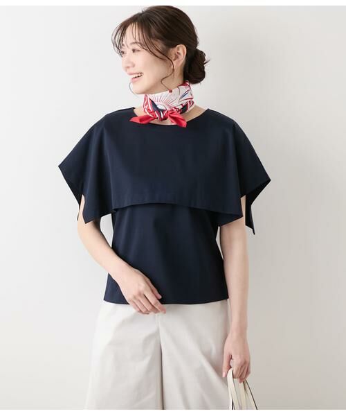23区 Lストレッチジョーゼット ケープデザイン カットソー