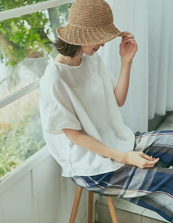 ナチュラルな風合いも涼しげで夏のスタイルにぴったり。