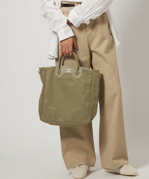 キレイめにもカジュアルにも似合うナイロン×レザーのショルダーバッグ。スタイリッシュなスクエアフォルムながら、長財布やドリンクボトル、コスメポーチなどがすっきり収まり収納力抜群。