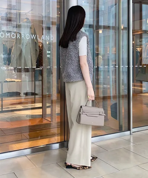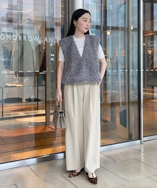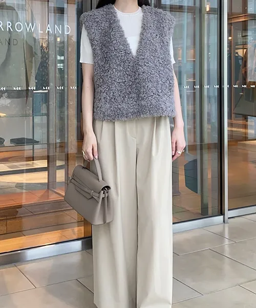 軽やかな着心地と程よいボリューム感が魅力的なファーベスト。深めのVネックが抜け感となり、ボリューム感が出過ぎない着回しやすいデザインです。あわせるインナー次第で長いシーズン着用でき、様々なレイヤードスタイルをお楽しみいただけます。