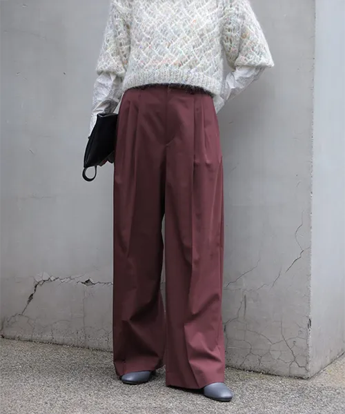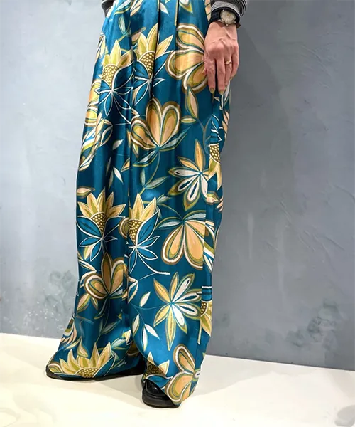 モダンな印象のプリント柄が目を惹くパンツ。2タックデザインのワイドシルエットでリラックス感もありつつ肌触りも良いです。シンプルなトップスと組み合わせるだけでスタイリングが決まり、存在感のある1着です。