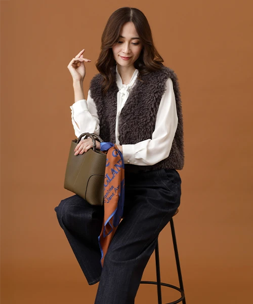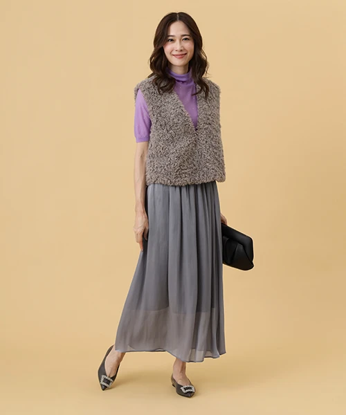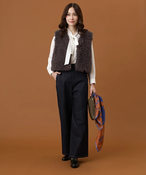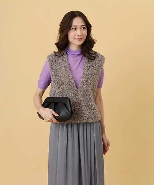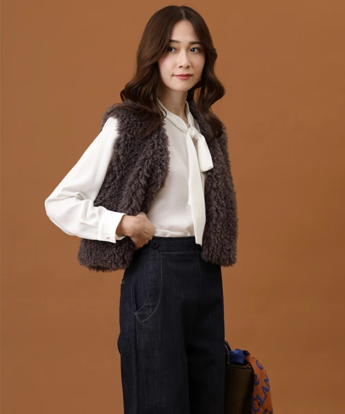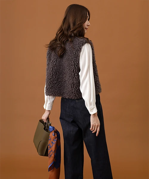 毛並みが特徴的なエコファーのベスト。