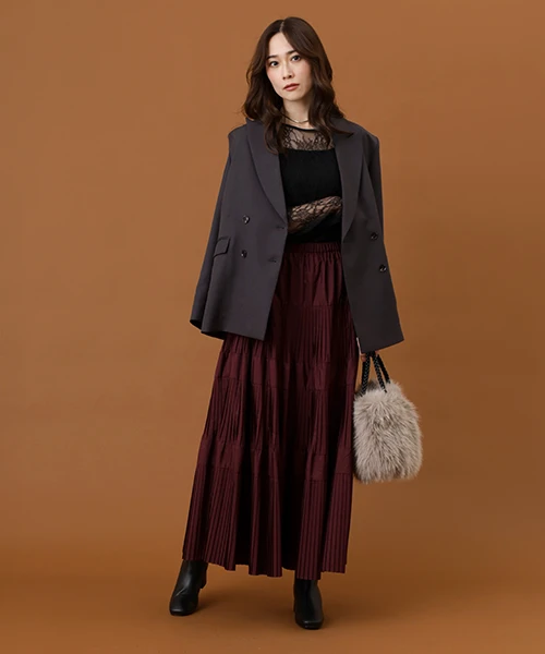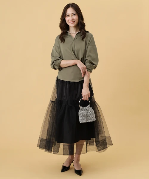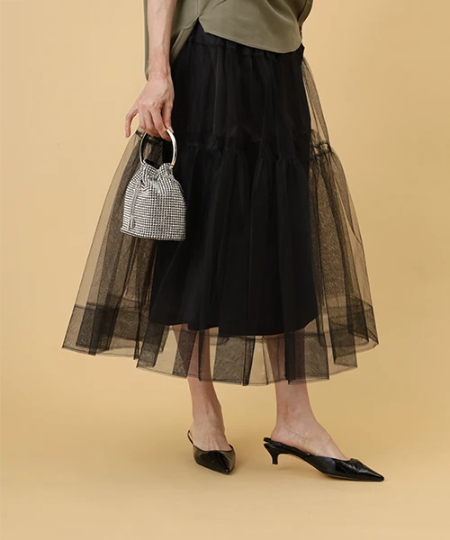 女性らしいシルエットのドラマティックなティアードスカート。