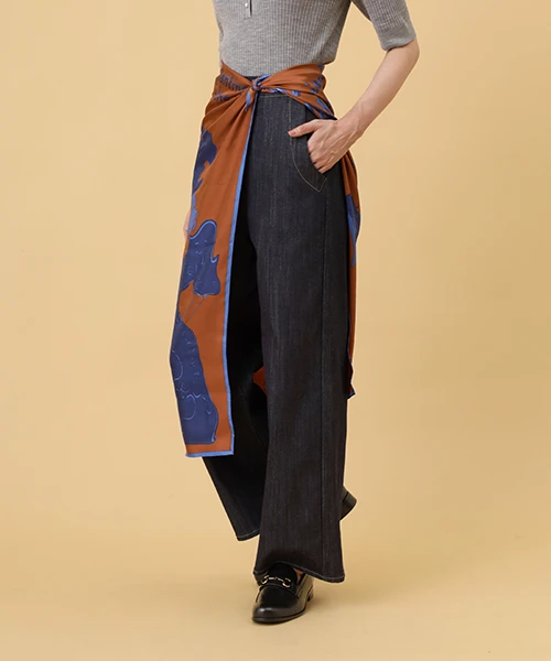 セーラーパンツのデティールをさりげなく効かせた美脚見えデニム。